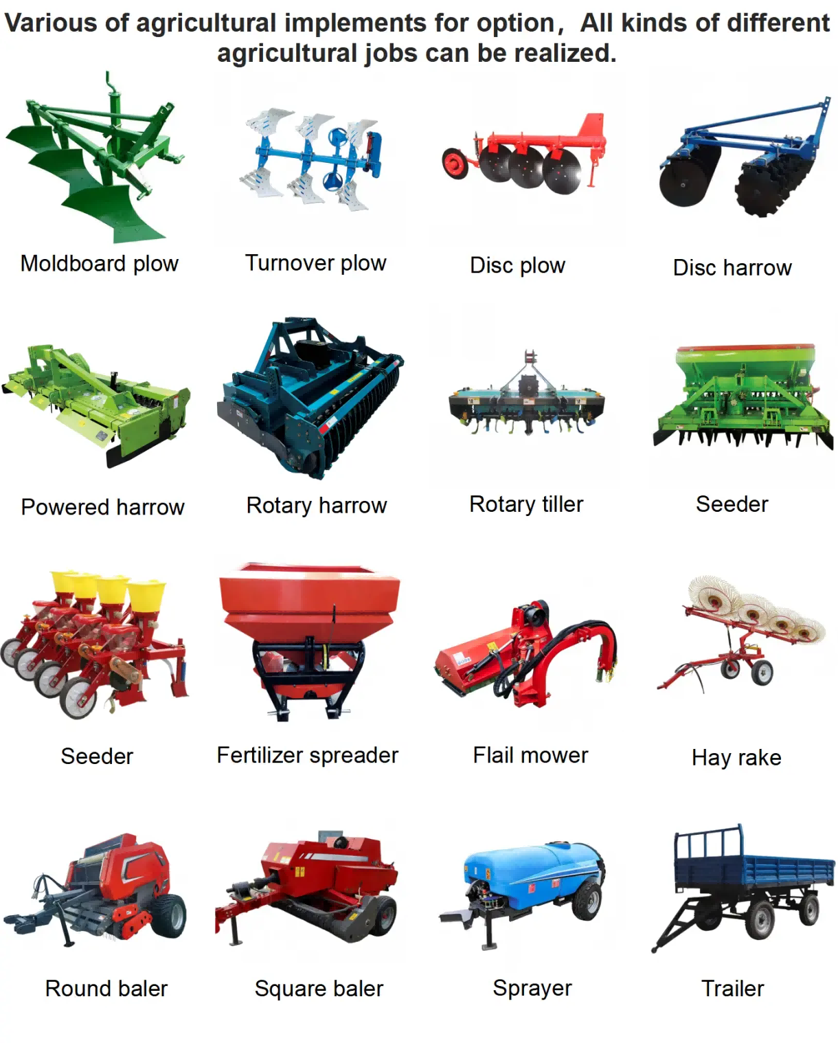 Šiuolaikinėje žemės ūkio gamybos sistemoje traktoriai, kaip pagrindinė galios įranga, gali išnaudoti visą savo potencialą tik moksliškai ir tinkamai suderinęžemės ūkio įrankiai. Faktinius gamybos poreikius tenkinantis žemės ūkio įrankių rinkinys gali ne tik žymiai pagerinti viso ūkininkavimo, sėjos ir lauko tvarkymo proceso efektyvumą, bet ir sumažinti energijos sąnaudas bei įrangos nusidėvėjimą, taip sukuriant didesnį pelną ūkininkams.